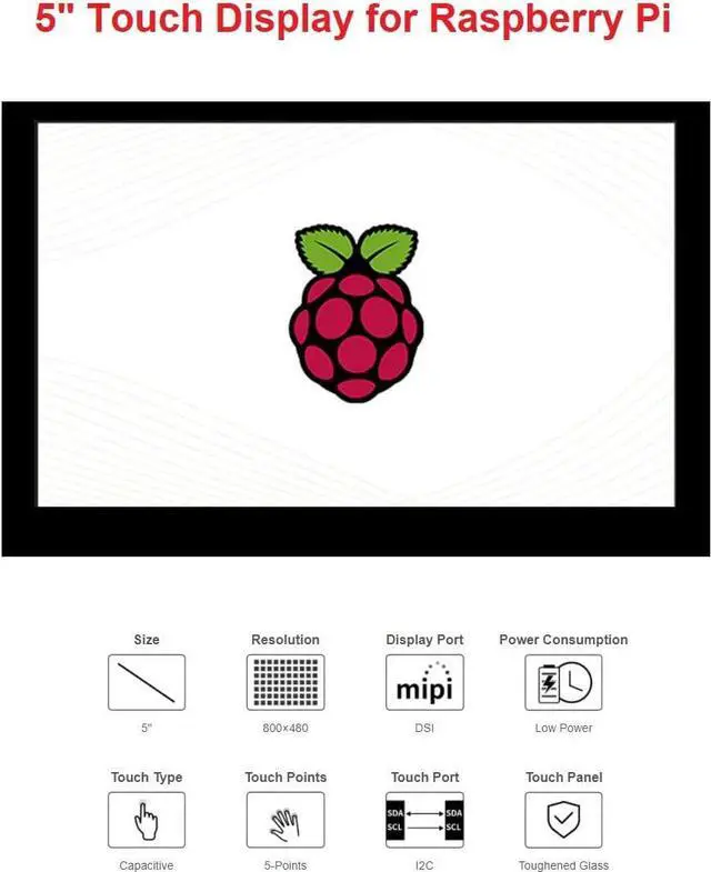 5inch TFT screen. 800x480 hardware resolution