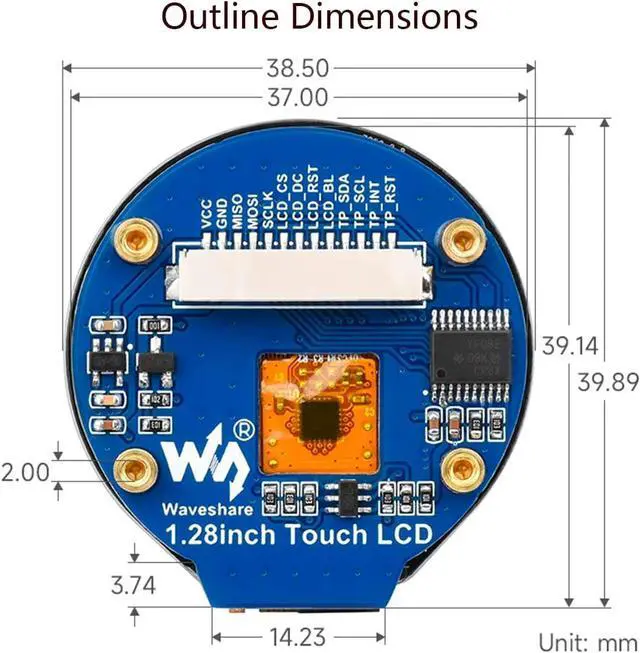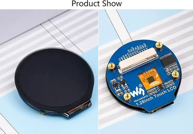 1.28inch Round LCD Display Module with Touch Panel, 240×240 Resolution, IPS screen. 65K colors, clear and colorful displaying effect.