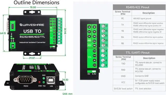 Industrial Grade Isolated USB Converter --USB TO RS232/485/422/TTL. Adopt original FT232RNL chip, fast communicating, stable and reliable, better compatibility