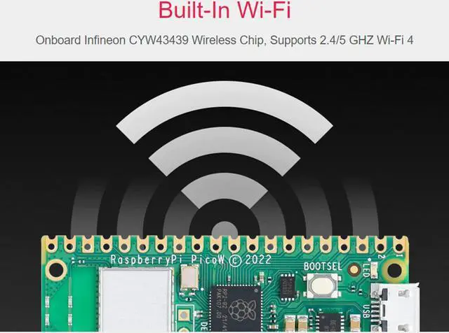 Built-in Wi-Fi: Onboard Infineon CYW43439 wireless chip, supports 2.4/5 GHZ Wi-Fi 4