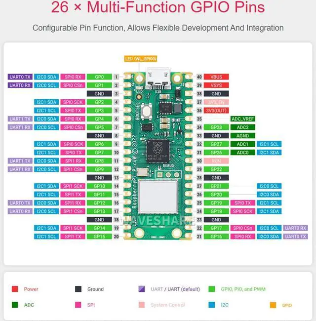 26 x multi-function GPIO pins: configurable pin function, allows flexible development and integration