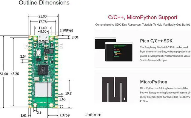 C/C++, MicroPython support: Comprehensive SDK, dev resources, tutorials to help you easily get started