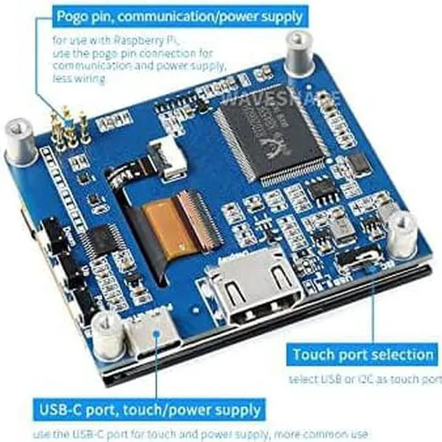 Onboard dual touch circuit, touch can be driven via USB(drive-free) touch interface or I2C interface of Raspberry Pi, 5-point touch, toughened glass capacitive touch panel, hardness up to 6H.Support backlight control, more power saving.