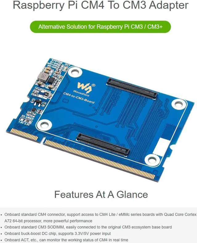Raspberry Pi Compute Module 4 Series to Compute Module 3 Series Adapter Board,Alternative Solution for Raspberry Pi CM3 / CM3+. Based on Raspberry Pi CM4,using CM 4 to replace CM3 series, solve the short supply problem of CM3.