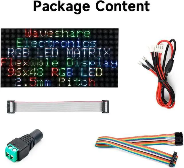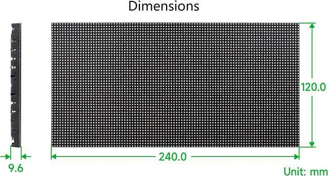 240×120mm dimensions, moderate size, suitable for DIY desktop display or wall mount display. 96×48 pixels, 2.5mm pitch, allows displaying text, colorful image, or animation