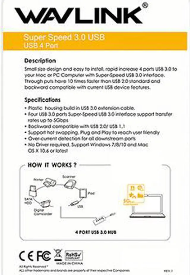 Wavlink 4-Port USB 3.0 Data Hub Super Speed USB 3.0. No drivers required, the hub gives you access to immediate, With the Super Speed USB 3.0, you can now transfer data at up to 10 times the speeds of the older USB 2.0 / 1.1 standards! That's fast enough to transfer a full HD movie in just seconds!