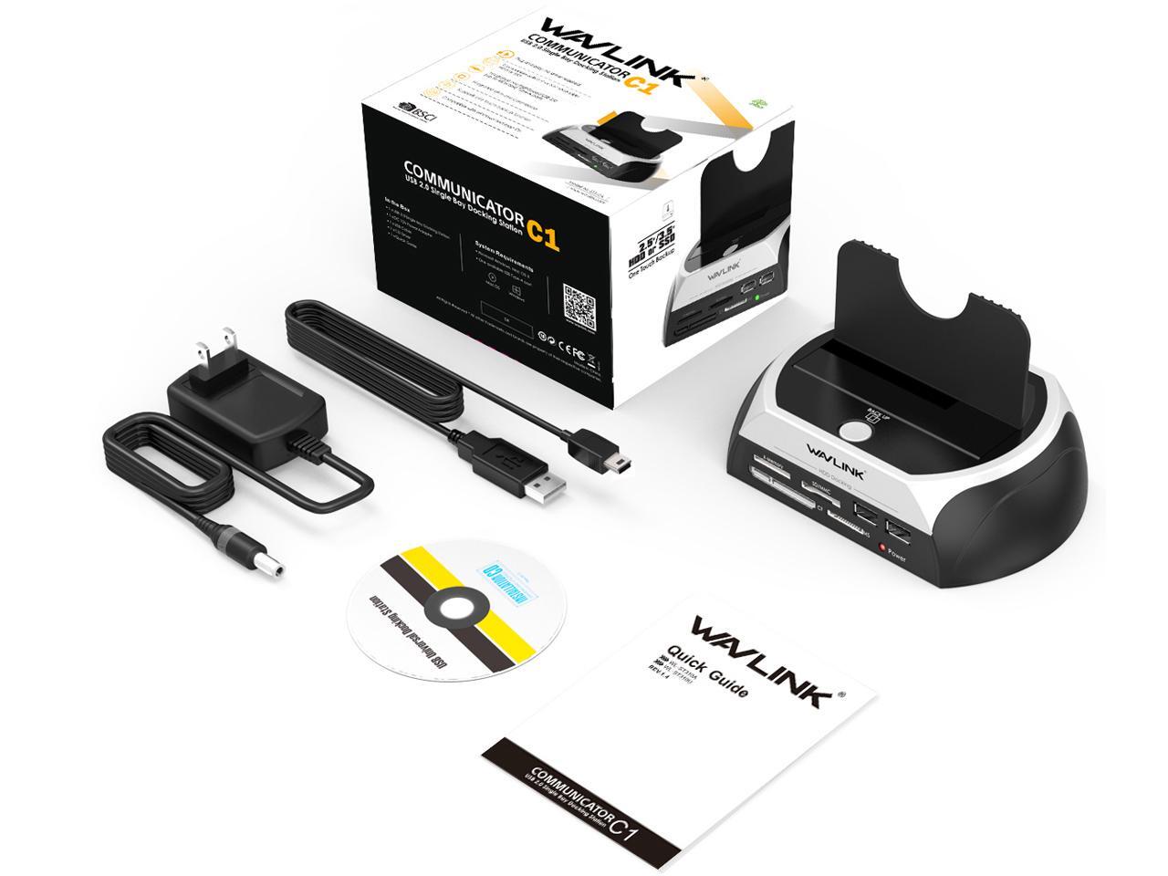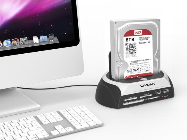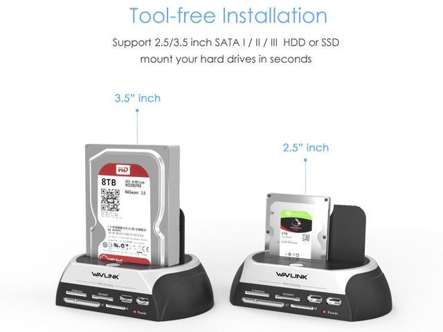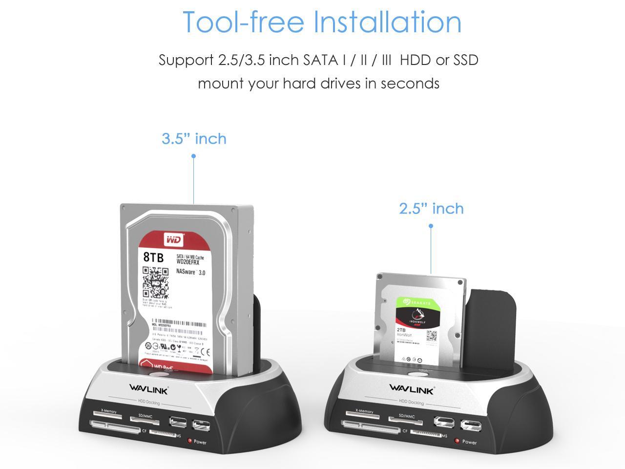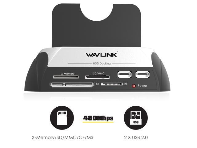 Wavlink USB2.0 to SATA External Hard Drive Enclosure with 2 USB Hub and TF & SD & MS Card For 2.5/3.5 inch HDD/SSD SATA I/II/III, Support Tool Free/One Touch Backup/UASP, LED Indicate, Up to 8TB