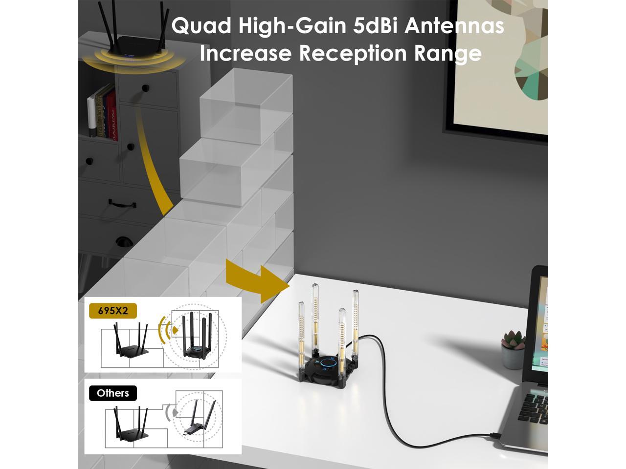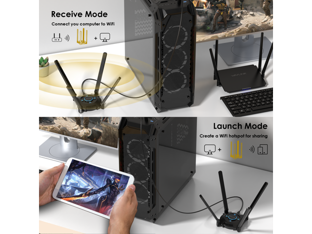 - Broader WiFi Coverage: The WiFi card is equipped with four high-gain 5dBi rotatable antennas, providing enhanced signal strength and improved coverage.these antennas can effectively penetrate walls and other obstacles