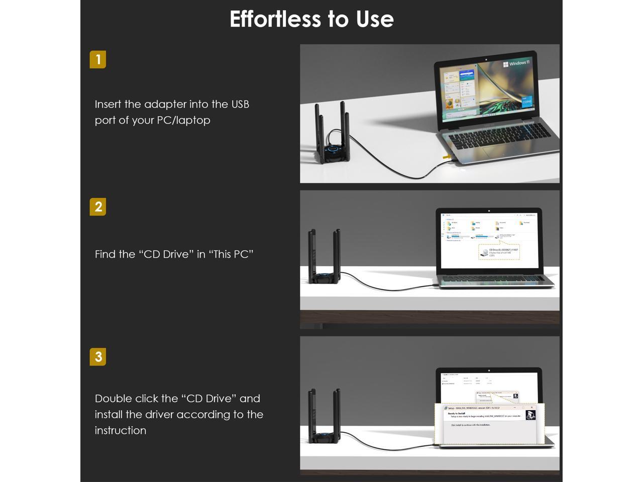 - Universal Compatiblity: Compatible with Windows 10/11 operating systems. It seamlessly works with any WiFi 6E or WiFi 6 router or mesh system, ensuring a reliable. This network adapter features built-in drivers, eliminating the need for manual driver installations