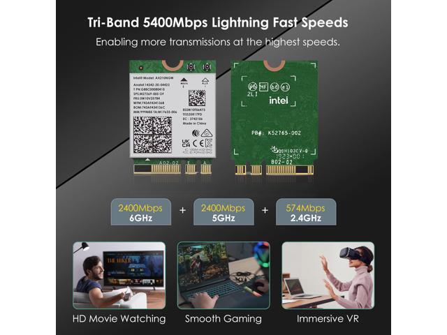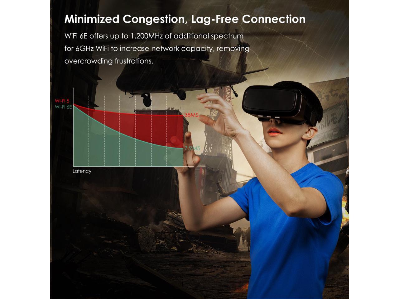 - The spacious 6GHz spectrum is exclusively dedicated to efficient WiFi 6E connections, resulting in a significant reduction in network congestion. Experience a remarkable boost in your overall speeds with up to 2400Mbps(6 GHz), 2400Mbps(5 GHz), and 574Mbps(2.4 GHz).