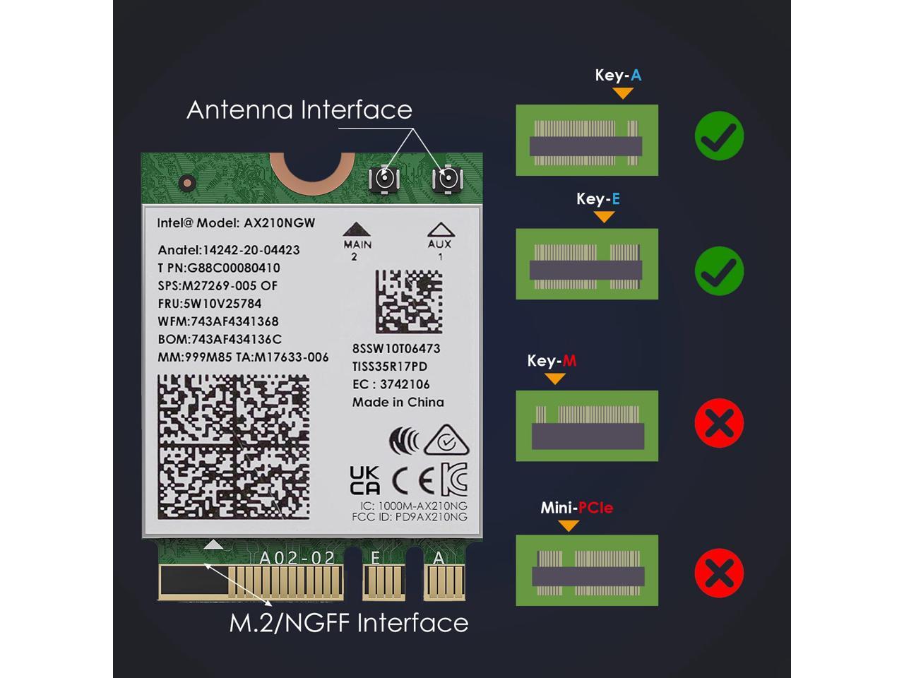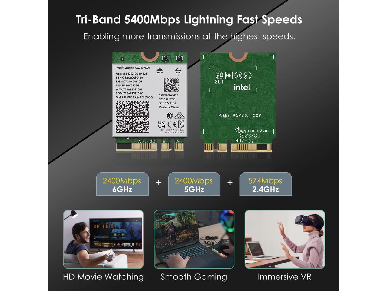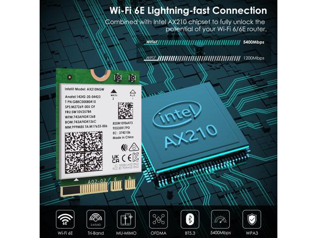 WAVLINK WiFi 6E Wireless Card Intel AX210 Tri-Band 5400Mbps 2.4GHz/5GHz/6GHz Network Adapter with Bluetooth 5.3 for Laptop, Ultra-Low Latency, Support Windows 10/11 (64bit) M.2/NGFF