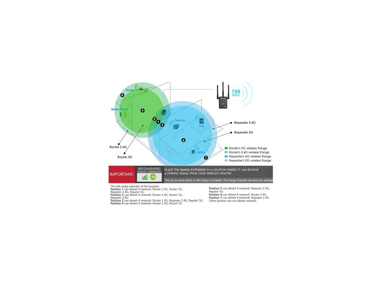 Wavlink AC750 Dual Band WIFI Range Extender Universal Wireless Signal Amplifier Booster Support for Repeater AP and wireless Router Modes 3-IN-1, 802.11ac, 3 x External Antennas, WPS, Wall Plug