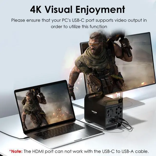 HDMI Output: Supports up to 4K@60Hz resolution for high-quality video output to external displays, enhancing your workstation setup.