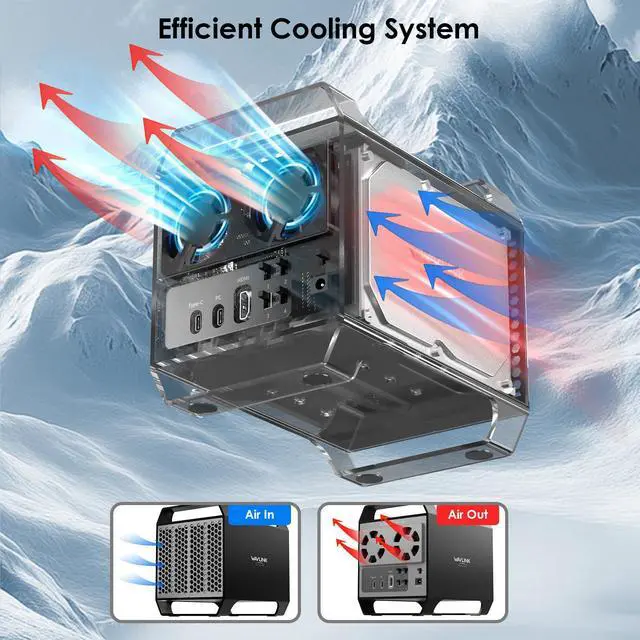 High-quality aluminum construction provides excellent heat dissipation. The cooling system runs automatically over 48°C.