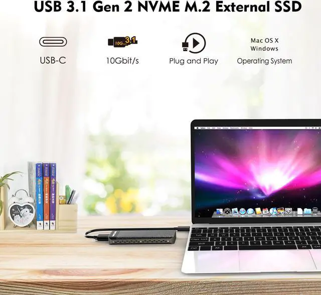 Connect your NVMe SSD to a USB-C Gen 2 or Thunderbolt 3 port at USB 3.1 Gen 2 10Gbps speeds. Capable of performance over 800MB/s read/write when using high performance NVMe media.( actual drive speed may vary due to media and file system overhead, and potentially thermal throttling for some SSDs