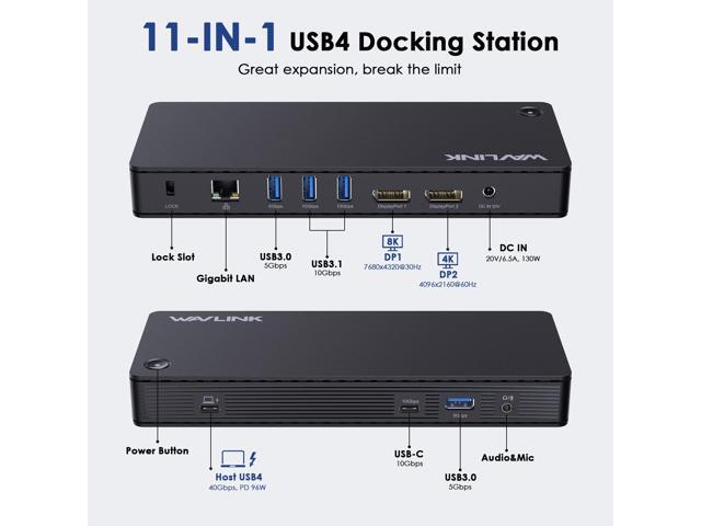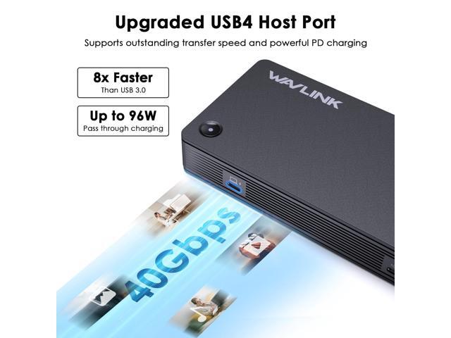 WAVLINK USB 4 Docking Station, 40Gbps 96W PD Charging, Single Display 8K, Dual Monitors with 2X DisplayPort, 10Gbps USB3.1x3, USB3.0x2, Gigabit RJ45, For Windows/Mac OS, Work with Thunderbolt 4/3