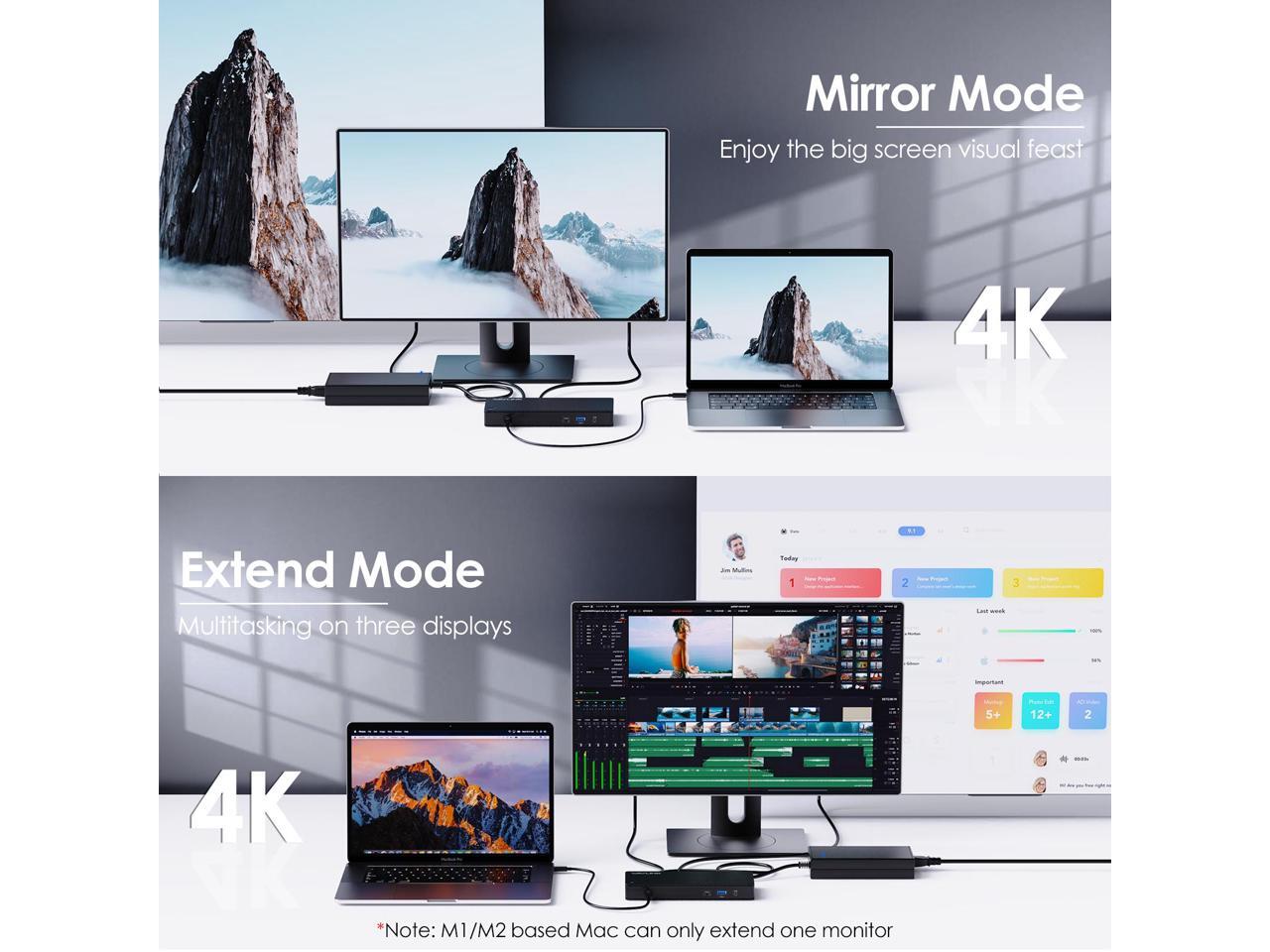 Single 8K or Dual 4K Video Output-Whether you want to mirror or extend your laptop's screen. Enjoy a stunning 8K@30Hz visual feast or boost your productivity with dual 4K displays. The WAVLINK 8K USB4 docking station supports single 7680x4320@30Hz on DP1 or 4096x2160@60Hz on DP2, as well as dual 4096x2160@60Hz. Please ensure that your laptop's USB-C port supports video output, as M1/M2 based Mac can only extend one monitor