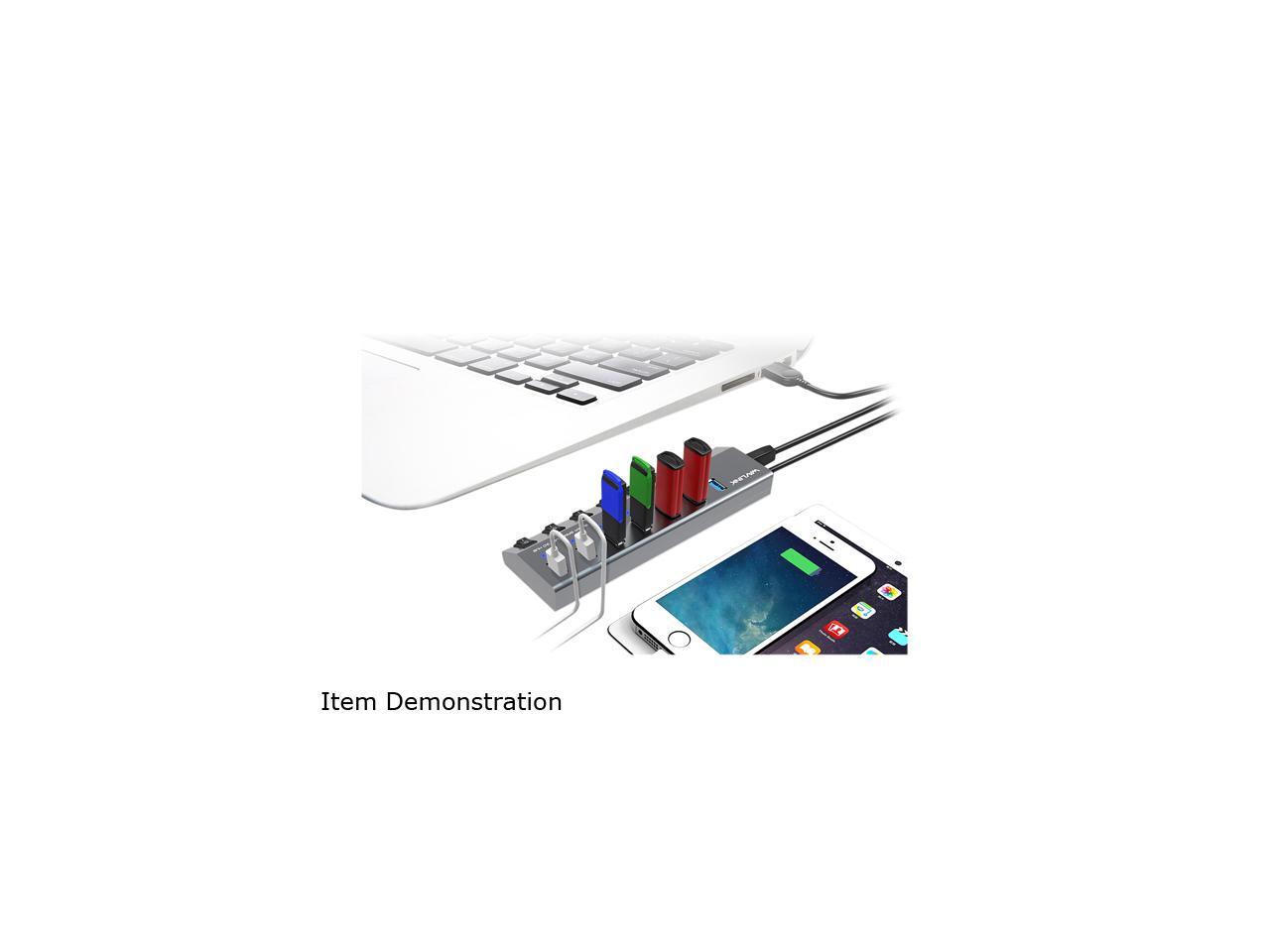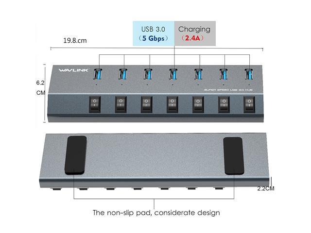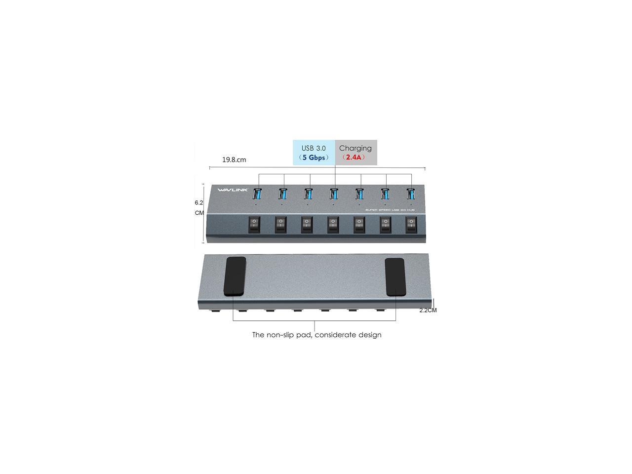 Wavlink 7 Ports USB 3.0 Charger Hub 48W Charging, 5V/2.4A Each Ports with Individual Power On/Off Switches and LEDs, Aluminum USB3.0 Hub For Macbook, iPad, iPhone, Laptops, Tablets, Mobile, etc.
