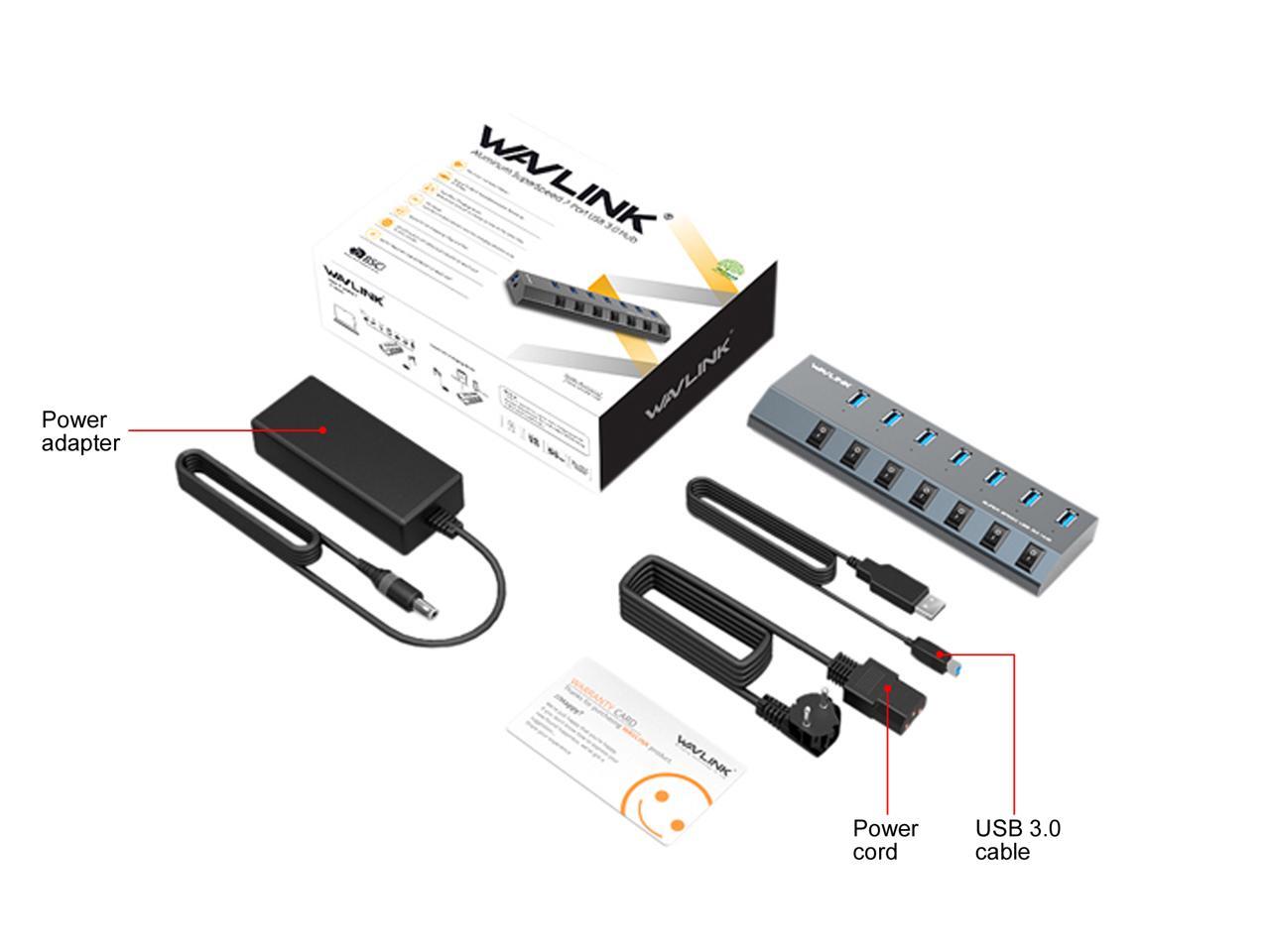 What You Get-1 x Aluminum 7 USB 3.0 Port Hub; 1 x USB 3.0 Extension Cable; 1 x Power Adapt