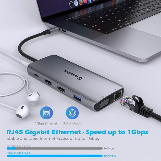 Multi Monitor USB Type C Hub Docking Station For Windows and Mac OS