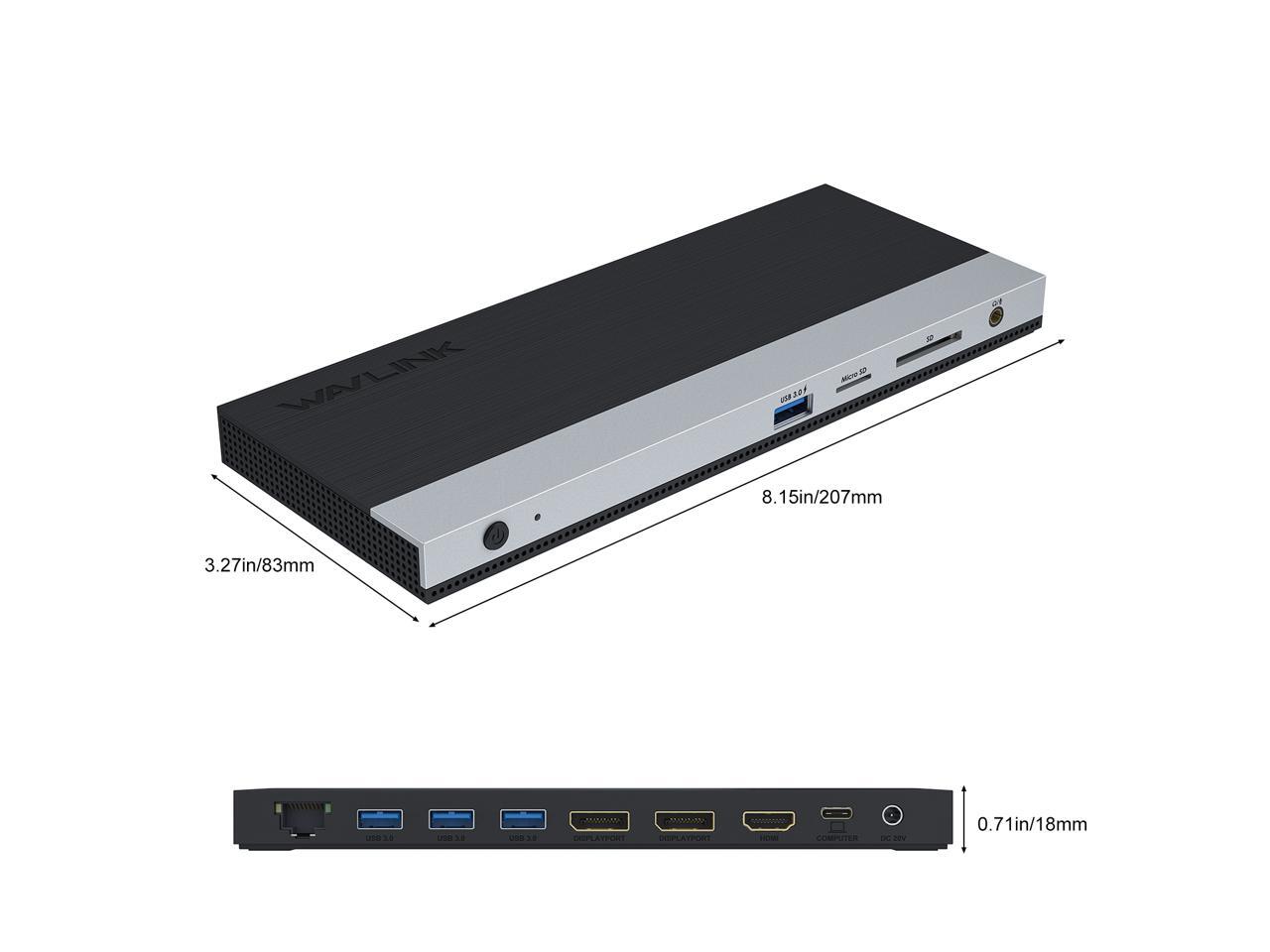 Wavlink USB-C Triple Display ( Dual DP + 1 HDMI) Docking Station with 65W Charging, USB C Gen 2 System, 2 Display Ports & HDMI, 4 USB 3.0, SD/TF Card Reader, Gigabit Ethernet) For MacBook Pro, Windows