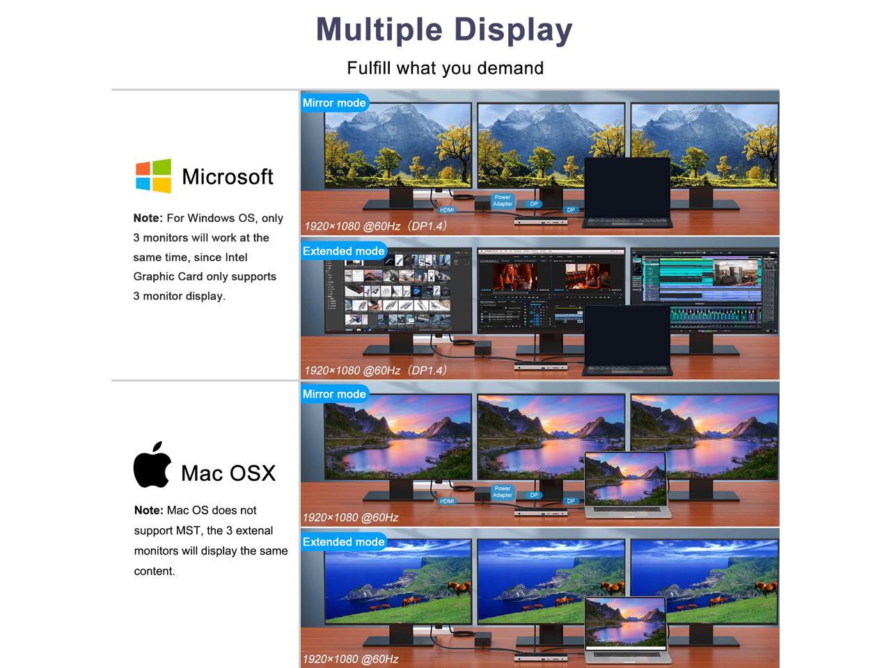 - Triple Display - Supports to connect up to 3 monitors. Resolution up to 3840x2160@60Hz when single disply. Resolution up to 2560x1440@60Hz with dual displays attached. Resolution up to 1920x1080@60Hz in triple display.