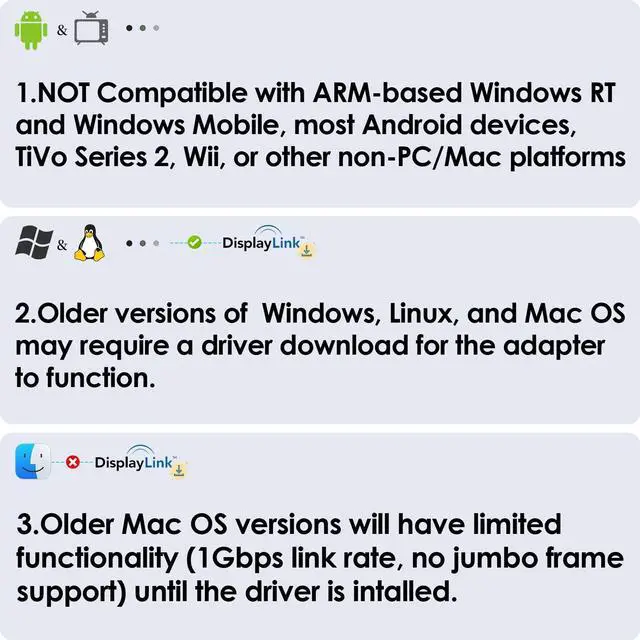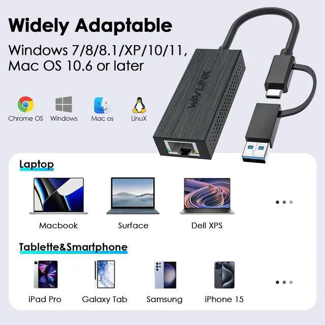 Widely Adaptable - It compatible with any USB-C and USB-A desktops, laptops, PCs, iPad and ultrabooks. It compatibility with Windows 7/8/8.1/XP/10/11, Mac OS 10.6 or later. It compatible all Thunderbolt 3, Thunderbolt 4, USB 3.2 (3.0/3.1), and 2.0 hosts. (USB 2.0 will limit the performance of the adapter.)