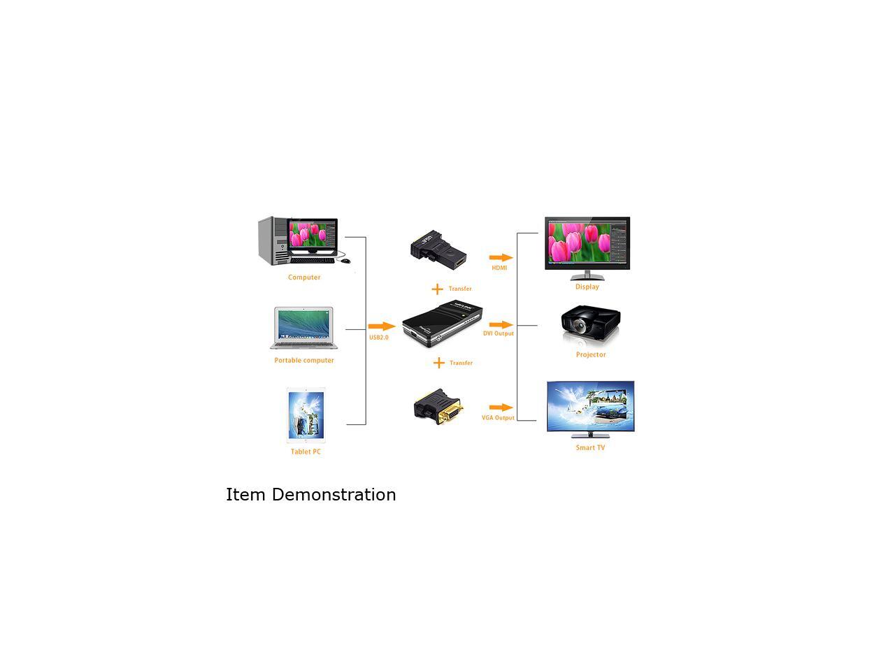 - Package: 1x USB to DVI Adapter, 1x DVI-VGA adapter, DVI-HDMI adapter, USB2.0 cable, Please download the latest driver from displaylink website.