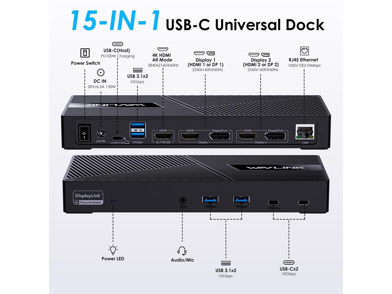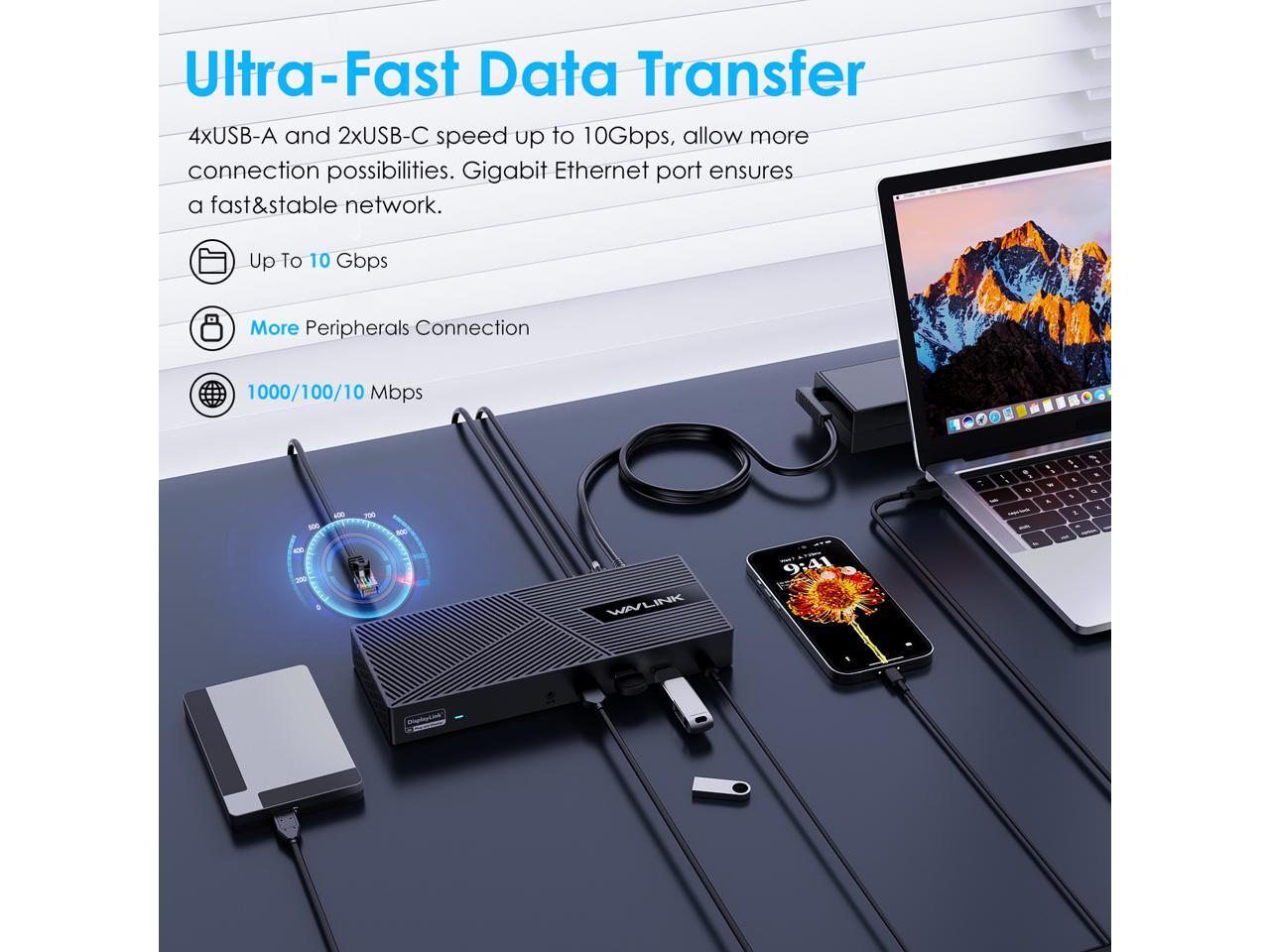 Wavlink USB C Triple Monitor Docking station With 100W Laptop Charging, 3X HDMI, 2X DisplayPort, 6X 10Gbps USB Ports, Gigabit Ethernet, Audio&Mic for MacBook M1/M2/M3/M4, USB4, Windows& More