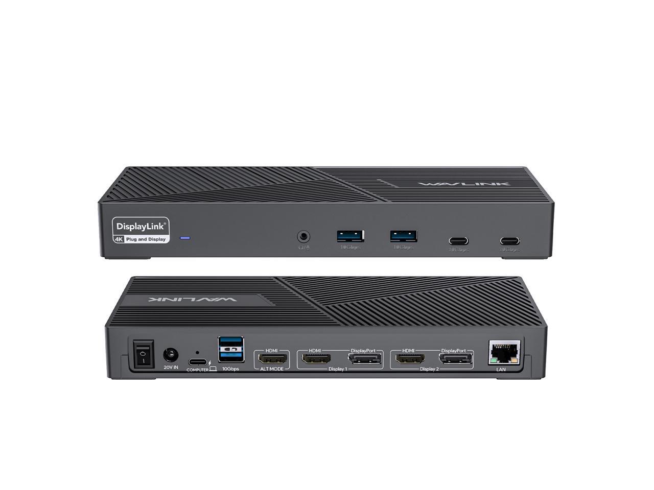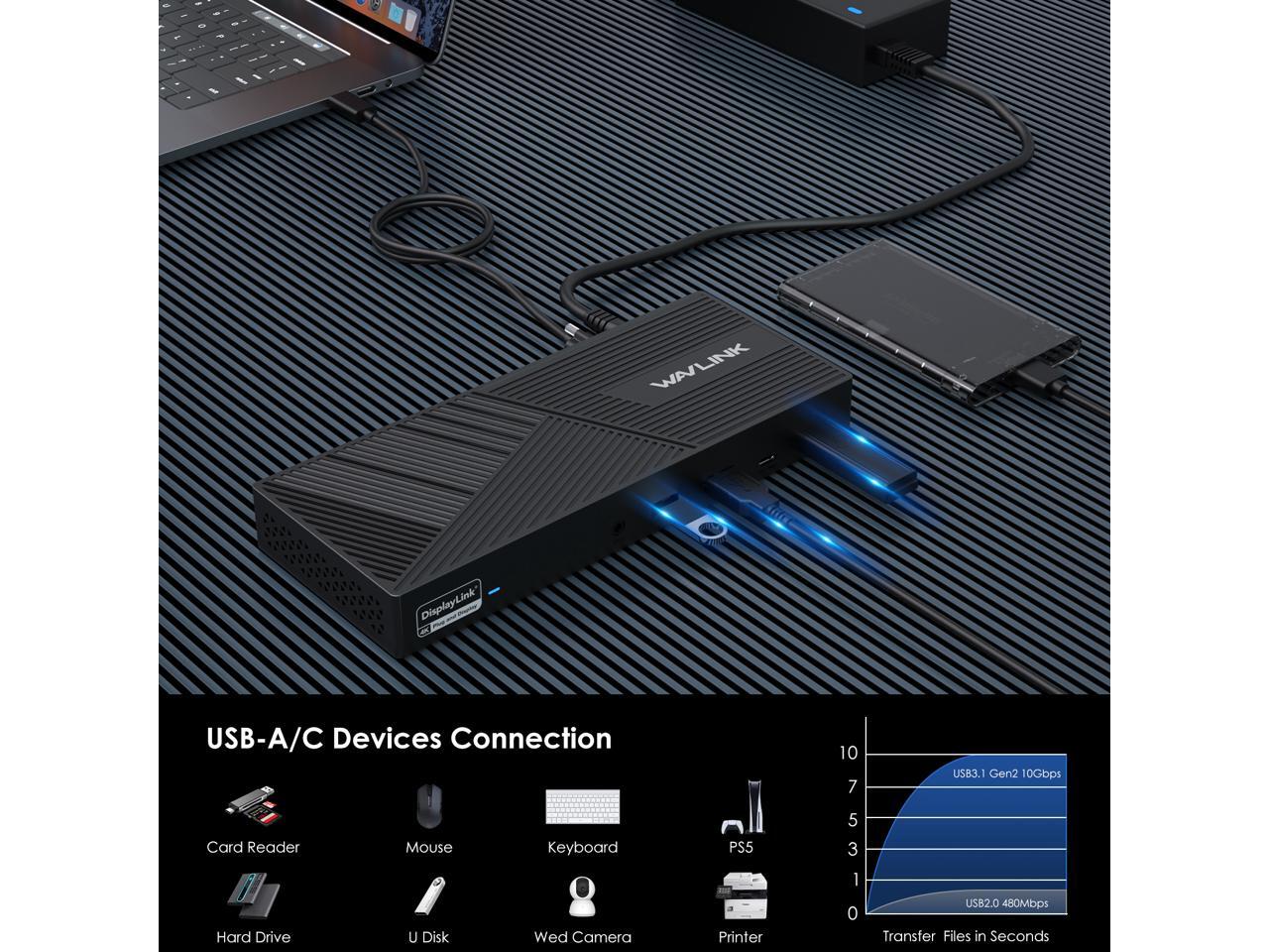 Wavlink DisplayLink Laptop Docking Station Triple Monitor 4K@60Hz For 3 Monitors, 100W Charging For Thunderbolt 3/4, USB-C/A, M1 M2 Mac/Windows/Chrome, 3 HDMI, 2 DP, 6 USB Ports, 160W Power, LAN,Audio