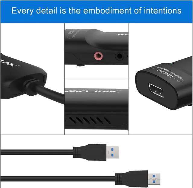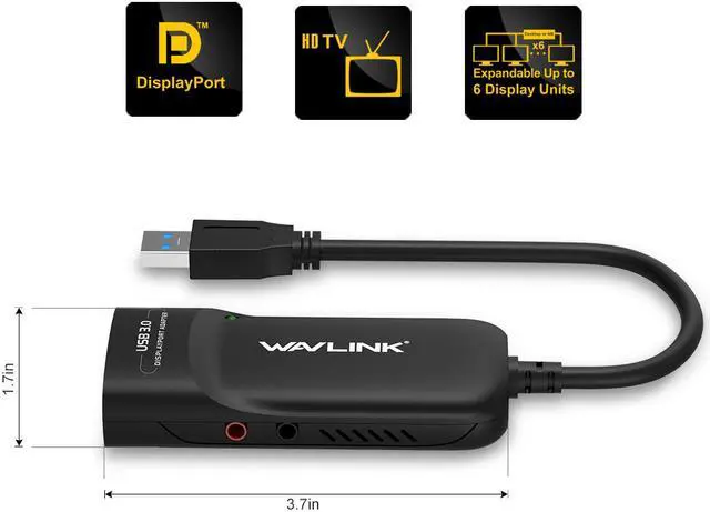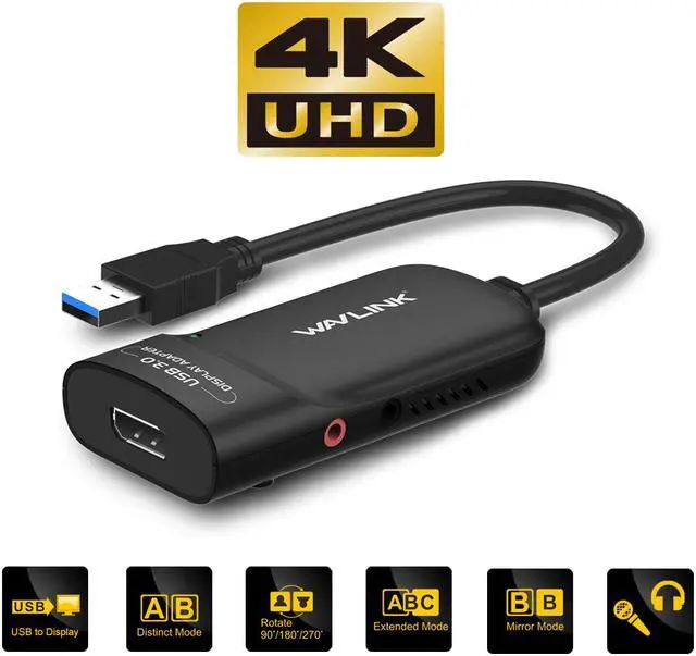 Link Plug and Display technology The Wavlink USB 4K to Display Port Graphics Adapter allows you to connect almost any kind of display via a standard USB 3.0 / 2.0 with support resolutions up to 4k (3840 x 2160 resolutions). Item is designed to be simple and easy to use - just install the software and plug in your Wavlink device and within a few seconds you've got and extra display or projector. Up to 6 devices per computer, connected to your PC there is simply no easier way to add a display to your PC or Mac