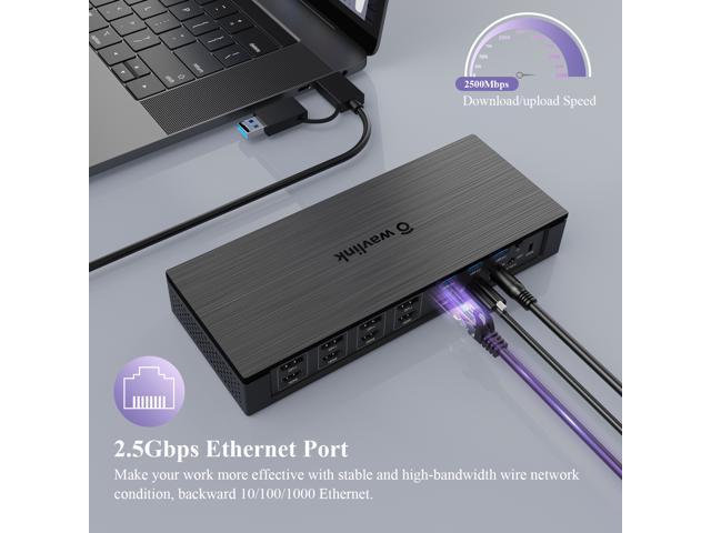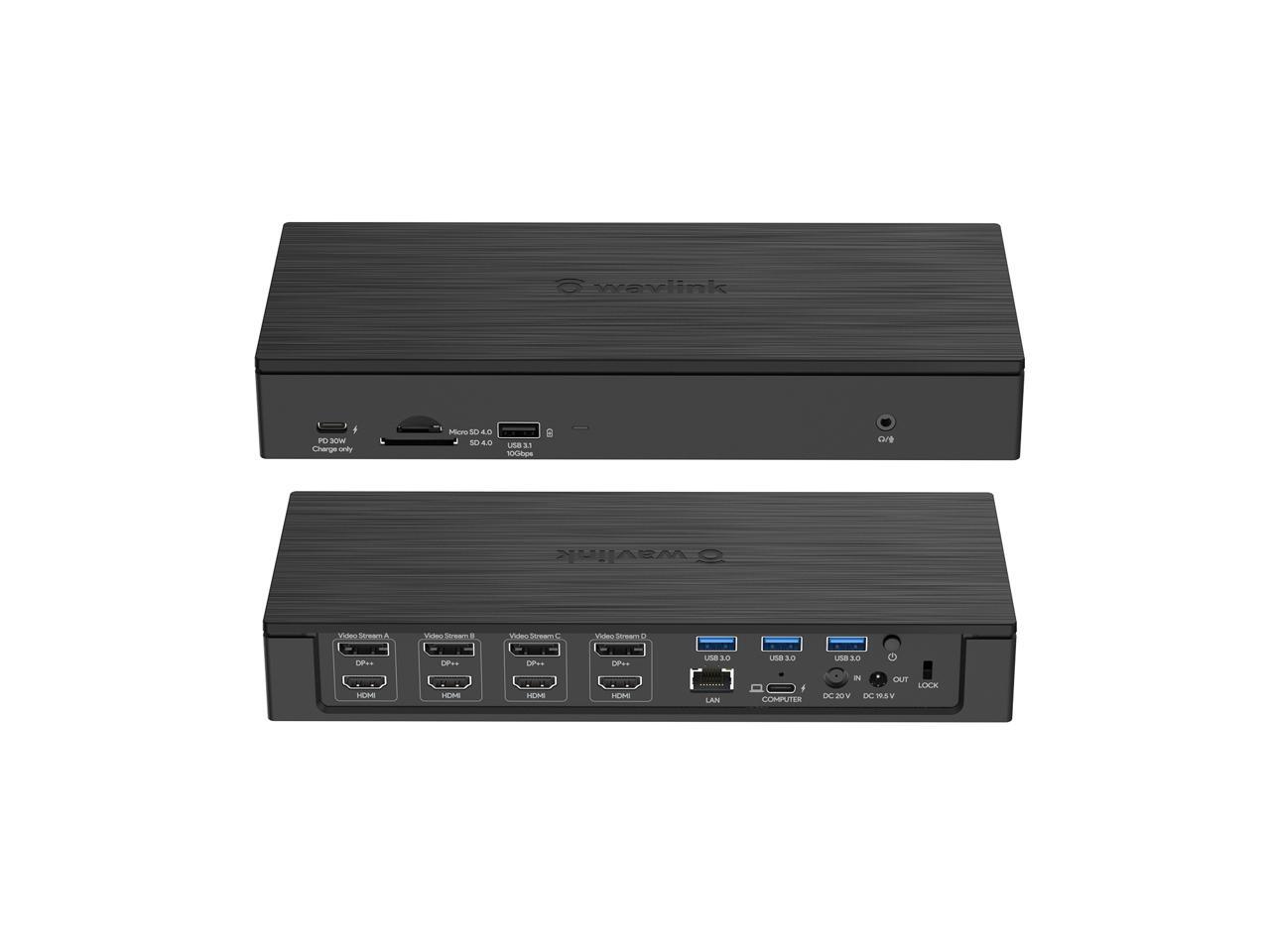 WAVLINK DisplayLink Laptop Docking Station, Quad Monitor 5K/4K@60Hz, 100W Charging For Thunderbolt 4/3, USB-C/A - M1 M2 Mac/Windows/Chrome/Ubuntu With 4 HDMI, 4 DP, 180W Power, SD 4.0 CR, 2.5Gbps LAN