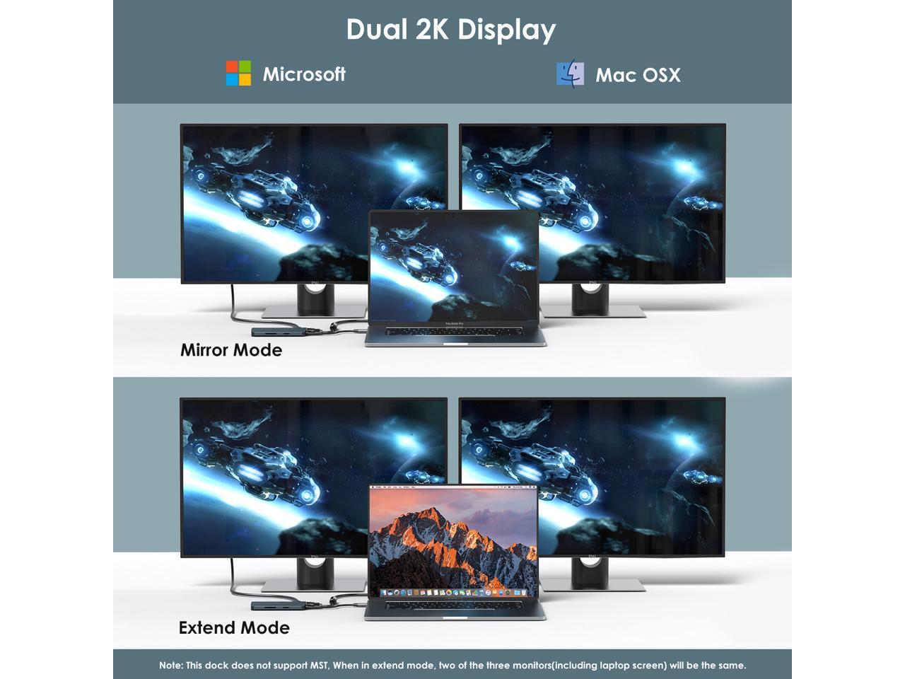 - Dual Display: Mirror or extend your screen with 4K HDMI and 2K VGA ports, directly stream 4K UHD @ 30Hz video by connecting HDMI port to HDTV, monitor or projector, you can also add another 2K @ 60Hz monitor through VGA port to improve your work efficiency.
