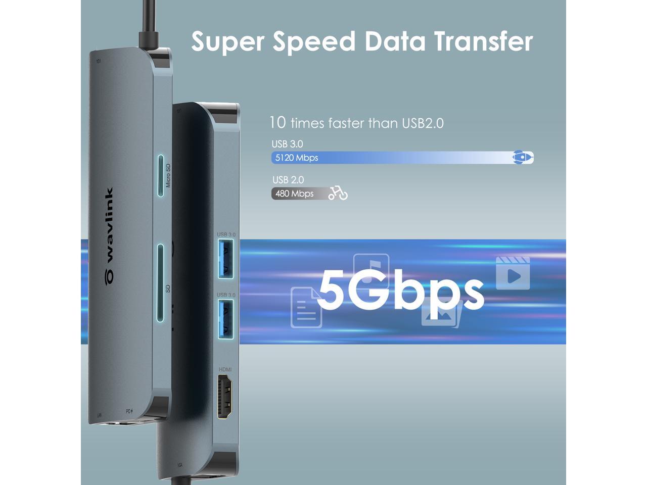 WAVLINK USB-C Hub USB C to HDMI Adapter with 4K@30Hz HDMI 65W Laptop PD Charging, 2K 60Hz VGA, 1000Mbps Ethernet, SD/Mirco SD 3.0 Card Reader, 2 USB 3.0, for MacBook Pro, Windows, Chrome OS, Linux