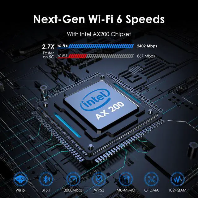 Built-in Intel module, fully compatible with Intel processors and drivers, compatible with 99% of the other processor brands on the market.