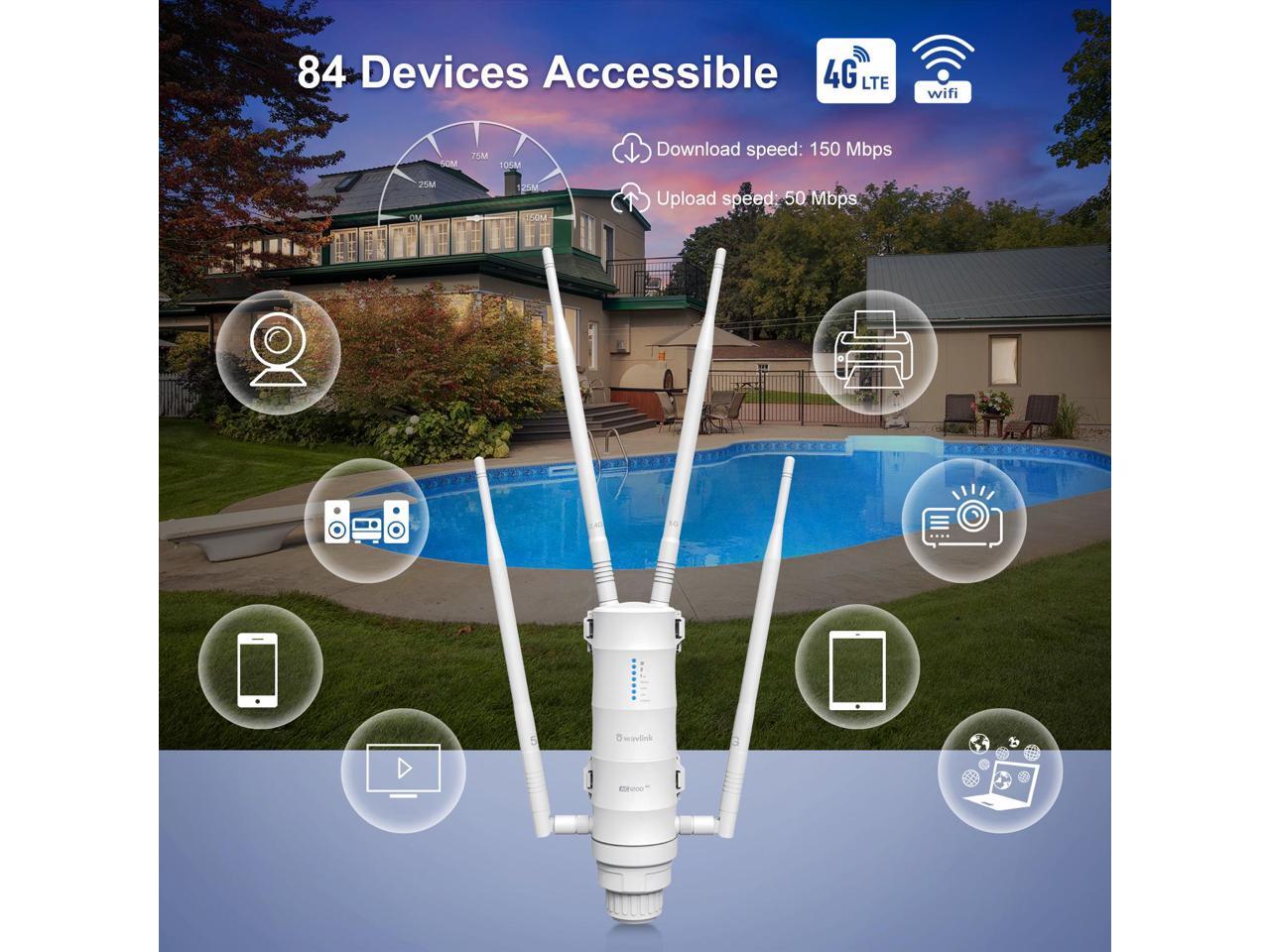 - Upgraded with a high-performance Qualcomm chipset, the AC1200/4G LTE outdoor Wi-Fi router offers improved signal strength and overall performance, ensuring a stronger and more reliable wireless connection