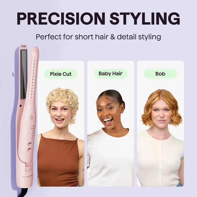 0.65" Pencil Flat Iron, Cool Curl Pencil, Small Airflow Styler and Straightener for Short Hair, Pixie Cut and Edges, Curling Iron for Short Hair with 360º Cool Airflow for Long-Lasting Hold