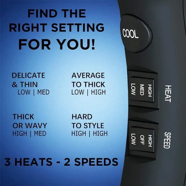 Provides powerful airflow that styles, hair fast – less time under heat means less styling damage.