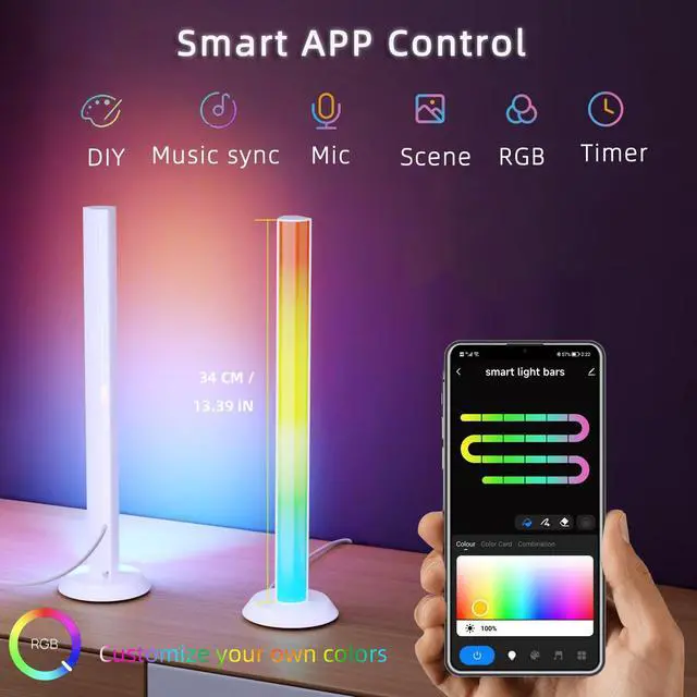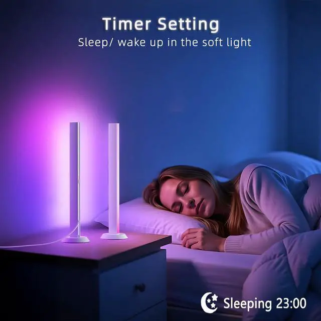 With timer function, you can set light bar for room to turn on or off according to your schedule, making you wake up in an ambient lighting atmosphere. And you don't need to worry about forgetting to turn them off when you fall asleep or leave the house.