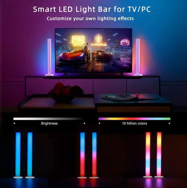 For 16 million colors and a variety of dynamic modes options, each mode displays different colors and lighting effects. Arranging them next to a TV and game consoles, or move them around for different gaming setups, you can immerse yourself in a visual ambiance lighting. Perfect for gaming setups and computer room decoration.