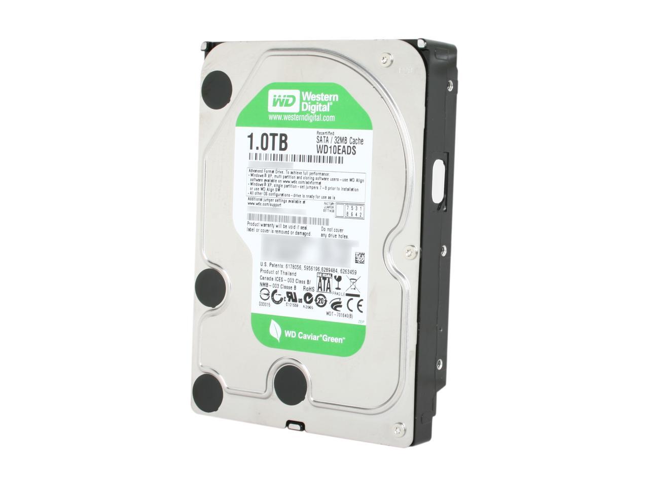 WD WD Green WD10EADS 1TB IntelliPower 32MB Cache SATA 3.0Gb/s 3.5" Internal Hard Drive Bare Drive