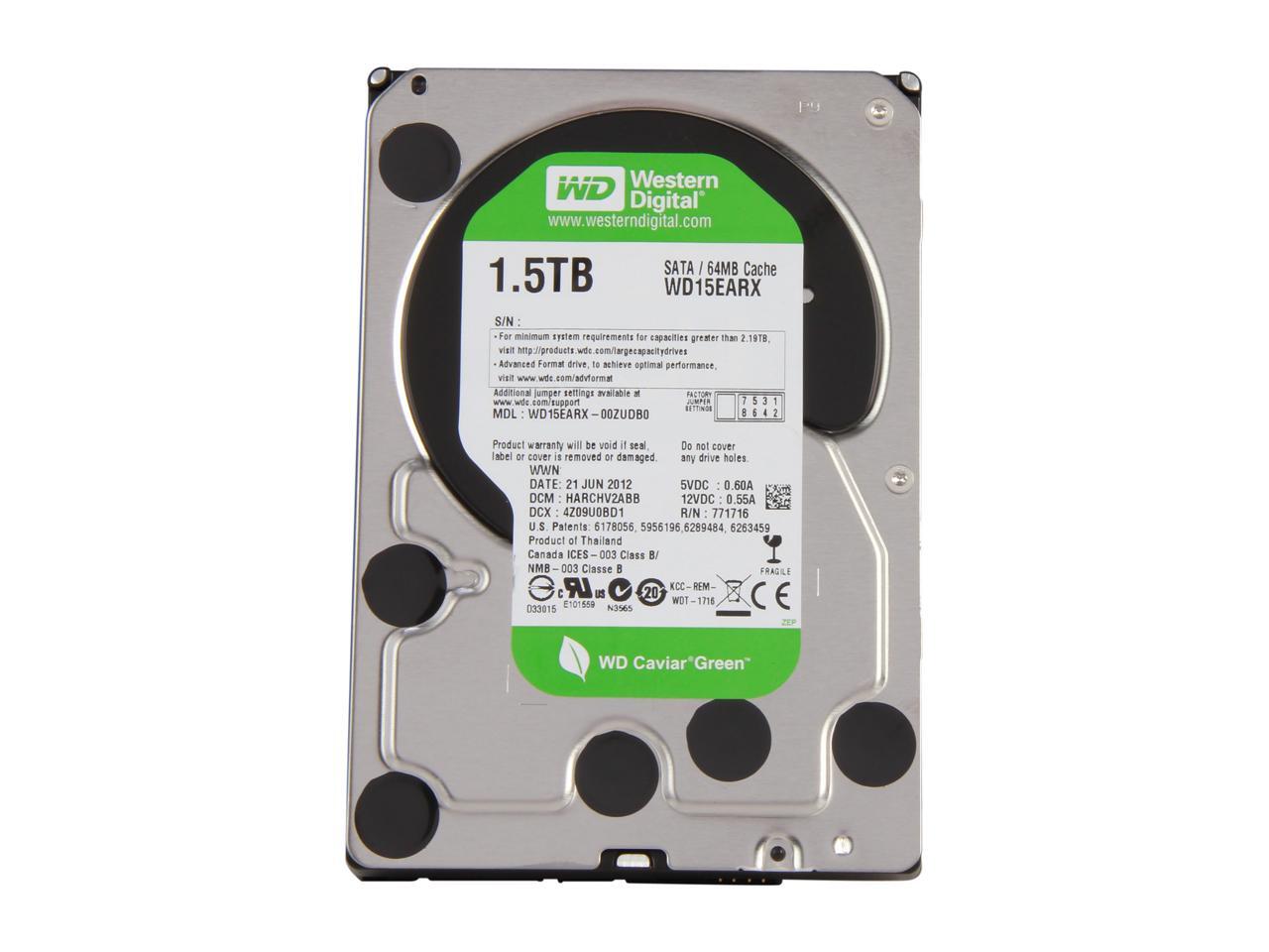 WD WD Green WD15EARX 1.5TB IntelliPower 64MB Cache SATA 6.0Gb/s 3.5" Internal Hard Drive Bare Drive