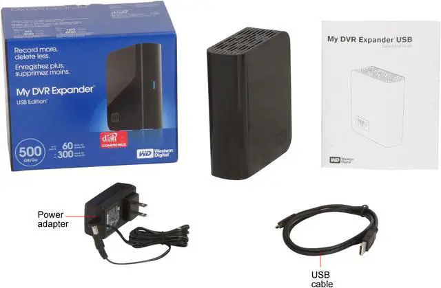 | Features | Easy to set up, easy to use - Just plug it in to the external USB port on your DISH Network ViP Series HD DVR and start recording even more TV shows, sporting events and movies. (Requires port activation. Fees may apply.) Compatible - My DVR Expander USB Edition has been verified compatible with DISH Network's ViP Series HD DVRs. Quieter, Cooler and Eco-friendlier - A low power-consuming hard drive and a no-fan passive cooling system reduces energy consumption by 30% and makes this drive quiet enough for use in living rooms and bedrooms. |