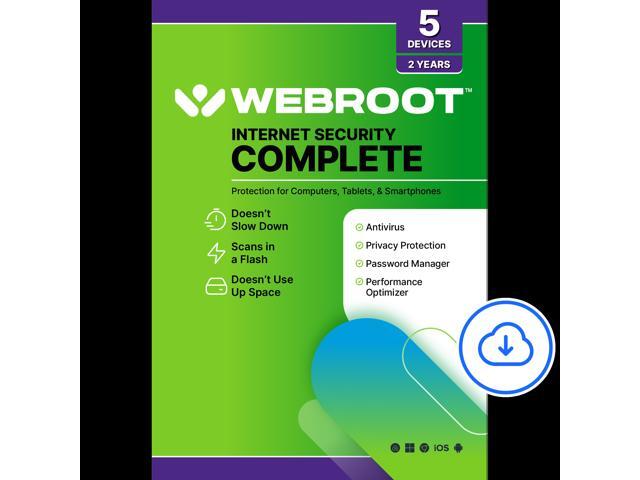 Webroot Complete Internet Security Complete + Antivirus - 5 Devices - 2-Year – Download Android, Apple iOS, Chrome, Mac OS, Windows
