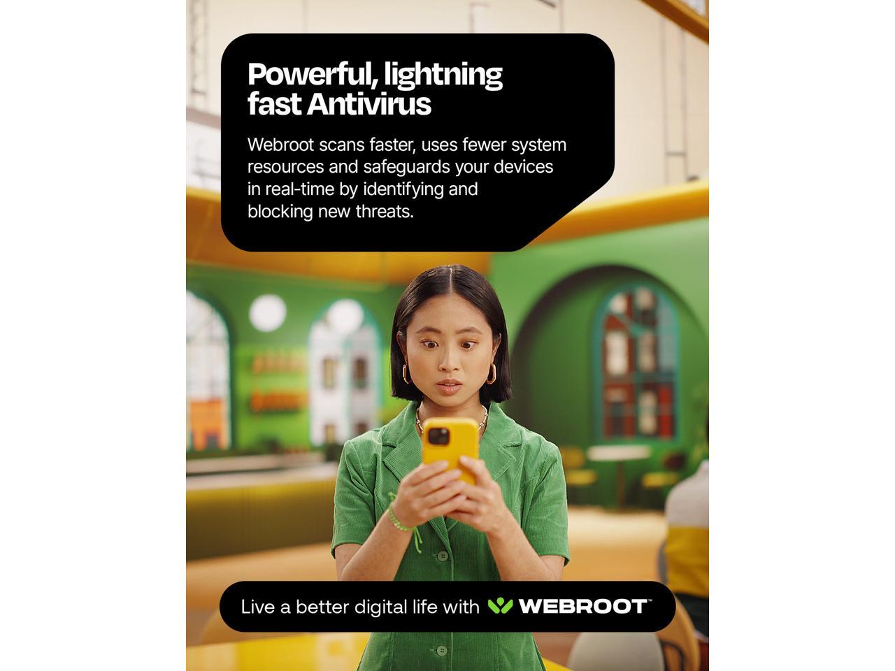 - Powerful, lightning-fast antivirus: Protects your computer from viruses and malware through the cloud; Webroot scans faster*, uses fewer system resources and safeguards your devices in real-time by identifying and blocking new threats.