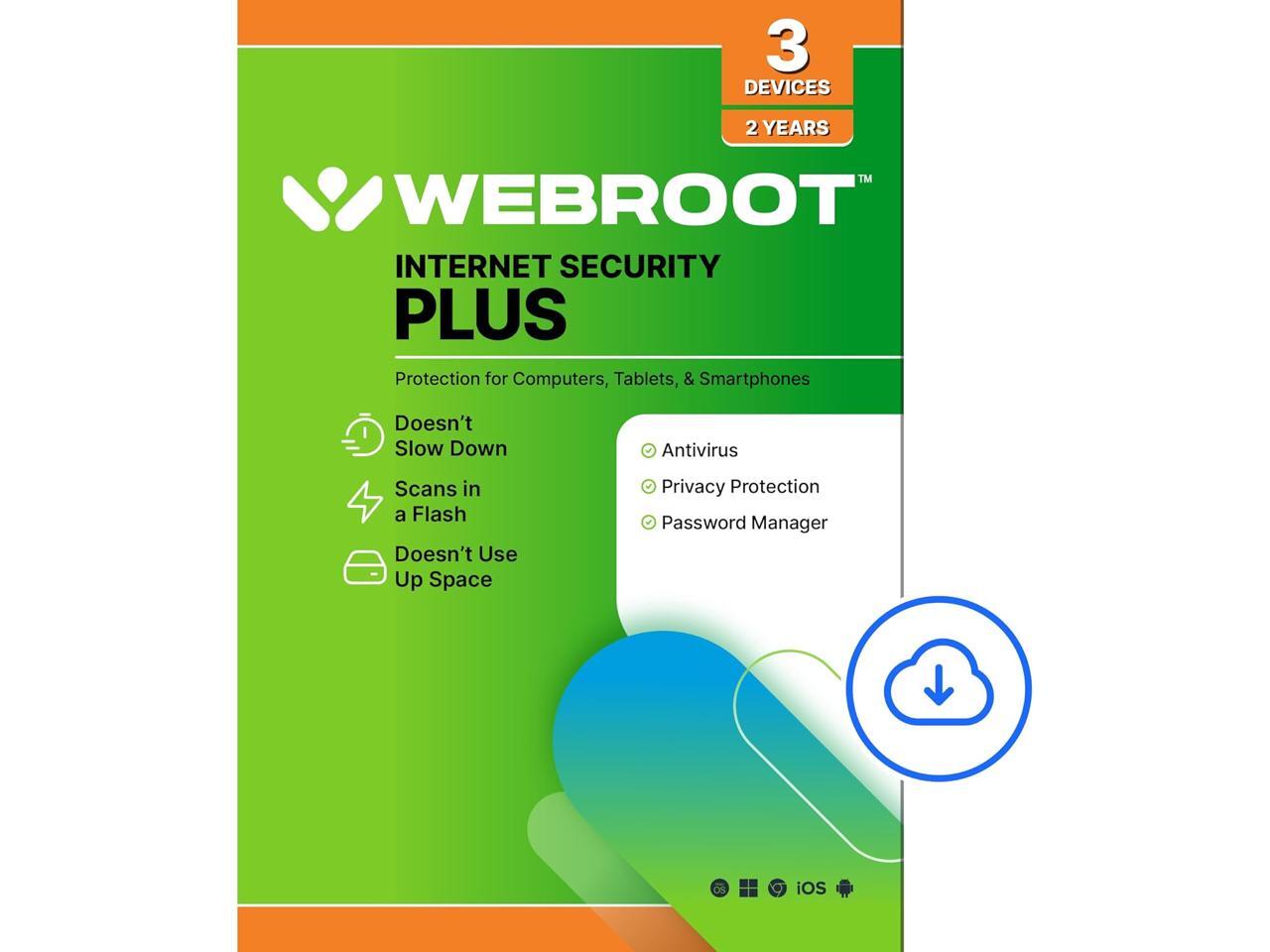 Webroot Internet Security Plus 2024 - 3 Device - 2 Year Download for PC/Mac/Chromebook/Android/IOS + Password Manager