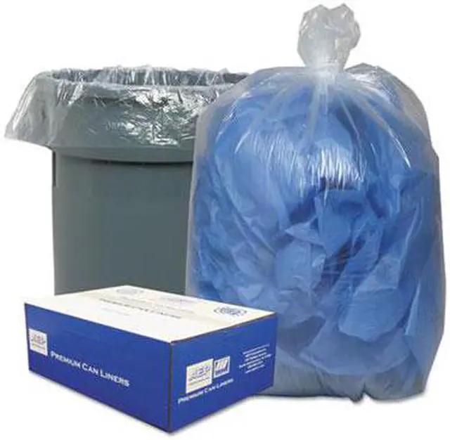 Linear Low-Density Can Liners, 33 Gal, 0.63 Mil, 33" X 39", Clear, 250/CartonClear liners are great for recycling and deter pilferage. Star bottom, coreless rolls. Convenient dispenser carton.