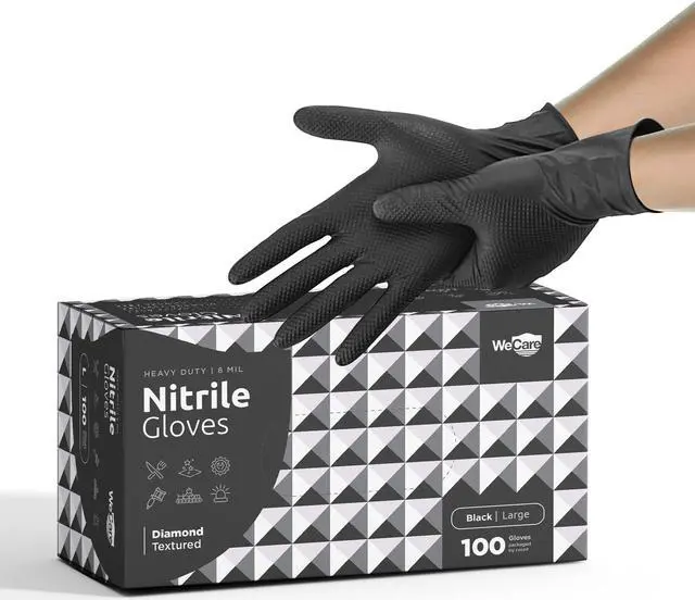 WeCare Diamond Textured Nitrile Gloves are the perfect solution for those seeking heavy-duty hand protection in a variety of professional settings. These gloves have been meticulously designed to provide exceptional durability, superior grip, and unmatched versatility. Crafted from high-quality nitrile material, WeCare Diamond Textured Nitrile Gloves are built to withstand the toughest tasks across various industries. Whether you work in automotive, construction, manufacturing, or any other profession that demands heavy-duty protection, these gloves are up to the challenge. They offer reliable defense against punctures, cuts, and abrasions, ensuring your hands remain safe and secure.