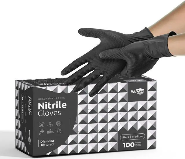 WeCare Diamond Textured Nitrile Gloves are the perfect solution for those seeking heavy-duty hand protection in a variety of professional settings. These gloves have been meticulously designed to provide exceptional durability, superior grip, and unmatched versatility. Crafted from high-quality nitrile material, WeCare Diamond Textured Nitrile Gloves are built to withstand the toughest tasks across various industries. Whether you work in automotive, construction, manufacturing, or any other profession that demands heavy-duty protection, these gloves are up to the challenge. They offer reliable defense against punctures, cuts, and abrasions, ensuring your hands remain safe and secure.