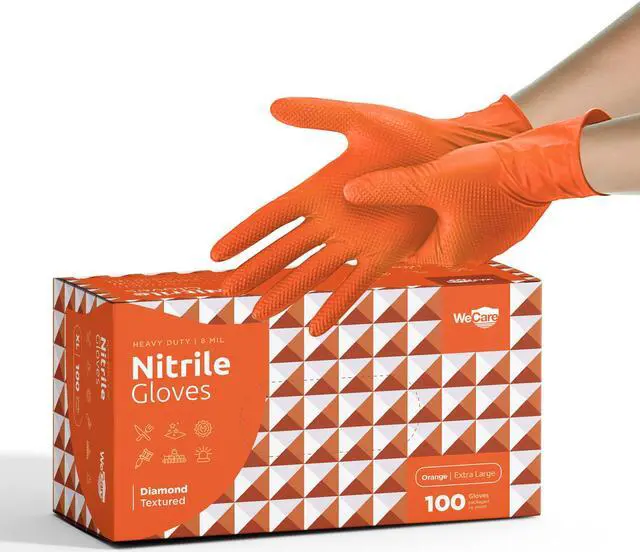 WeCare Diamond Textured Nitrile Gloves are the perfect solution for those seeking heavy-duty hand protection in a variety of professional settings. These gloves have been meticulously designed to provide exceptional durability, superior grip, and unmatched versatility. Crafted from high-quality nitrile material, WeCare Diamond Textured Nitrile Gloves are built to withstand the toughest tasks across various industries. Whether you work in automotive, construction, manufacturing, or any other profession that demands heavy-duty protection, these gloves are up to the challenge. They offer reliable defense against punctures, cuts, and abrasions, ensuring your hands remain safe and secure.